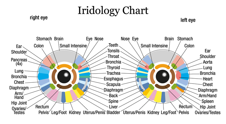 Iridology is the study of the iris of the eye, to determine a person’s state of health and their predisposition to illness. It can tell you when an organ is under attack or strain, long before it is damaged; as soon as the cells start getting damaged, this will show in your iris much earlier than a conventional scan can pick it up. Before scans were used, many civilizations used to look into the eye to see the state of the body or simply to know the sex of an unborn child!